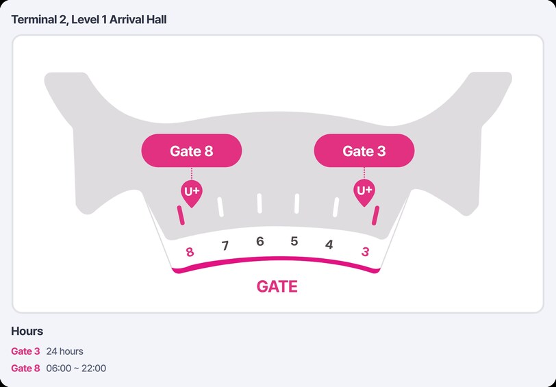 Heures d'ouverture : 6 h à 22 h (KST)LG U+ Compteur près de la porte F