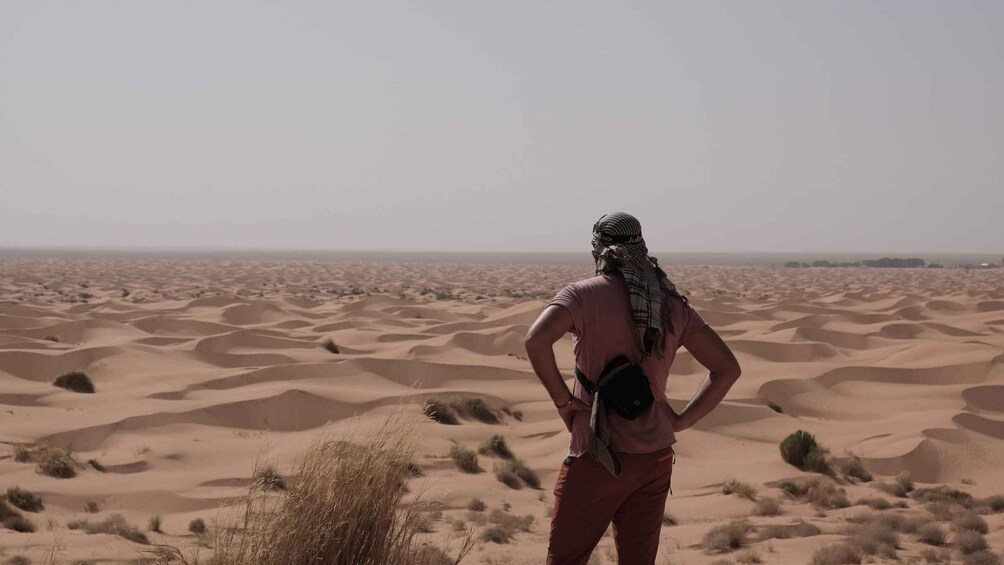 Notre première étape nous mènera au lac salé de Chahbania, où vous aurez l'occasion de faire un arrêt photo fantastique, pour capturer la beauté naturelle saisissante de la région. Nous nous immergerons ensuite dans la culture locale en visitant le marché animé de Tataouine. Explorez les étals animés, interagissez avec les habitants et savourez les saveurs de la Tunisie.
