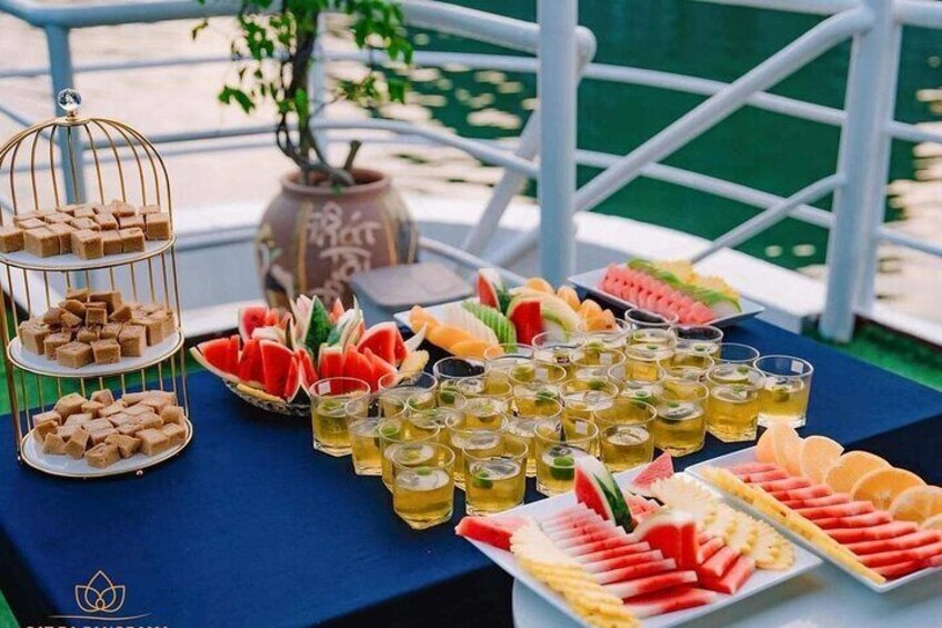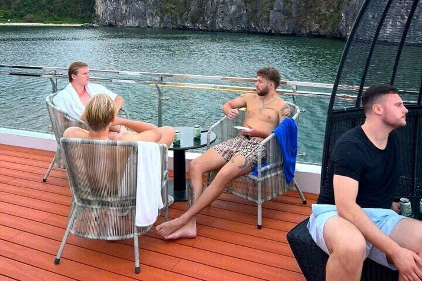 Superbe coucher de soleil Lan Ha Bay sur croisière de luxe avec toboggan aquatique