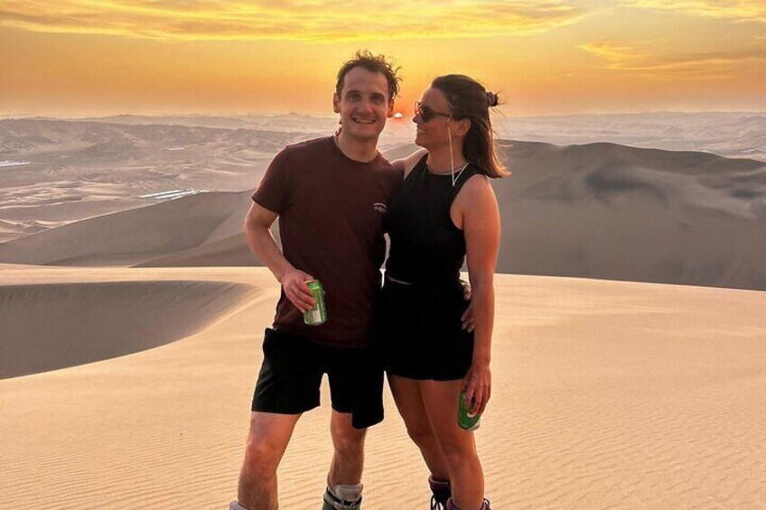 Caché au cœur du Pérou, le désert de Huacachina est un paradis époustouflant de dunes dorées infinies entourant une superbe oasis naturelle. Découvrez ce paysage enchanteur, où l'aventure rencontre la tranquillité, offrant l'évasion parfaite de l'ordinaire. Détendez-vous et laissez le coucher de soleil envoûtant peindre le ciel dans des tons orange et rose, créant une expérience inoubliable. Explorez le vaste désert lors d'une exaltante promenade en buggy dans les dunes ou glissez dans les dunes sur un sandboard-aventure vous attend à chaque tournant. Vivez la merveille de Huacachina, véritable joyau du désert pas comme les autres !