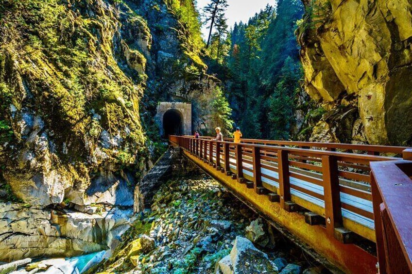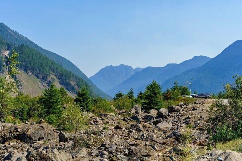 Voyage de Vancouver à Kamloops à travers les paysages époustouflants et la riche histoire de la Colombie-Britannique. Arpentez le terrain historique de Fort Langley, où la province a pris forme. Aventurez-vous à travers les spectaculaires parois rocheuses des tunnels Othello, une merveille d'ingénierie. Tenez-vous devant l’immense Hope Slide, un rappel du pouvoir de la nature. Continuez à travers les cols de montagne et les vallées ouvertes, découvrant des histoires d'exploration, d'industrie et de résilience tout au long du chemin.